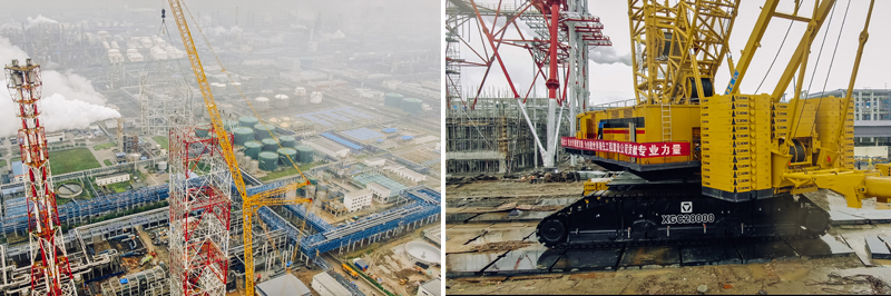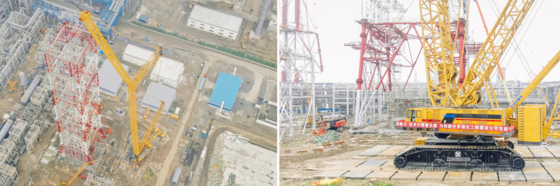02寧波鎮海煉化工程項目(鎮海基地項目)火炬塔架吊裝最大起吊高度208米。