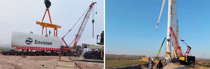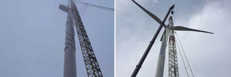 01濱海頭罾項目5.2MW機組為陸上風電試驗機型,為陸上首次進行本機型的安裝,部件中最重的機艙,起重重量達184噸。